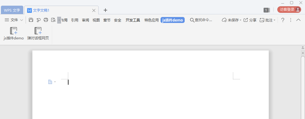 在 WPS 程序中新建空白文档,查看刚刚新建的 WPS 加载项。点击上面的按钮,尝试一下吧。