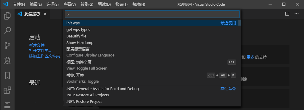 打开 Visual Studio Code 命令面板,执行 init WPS